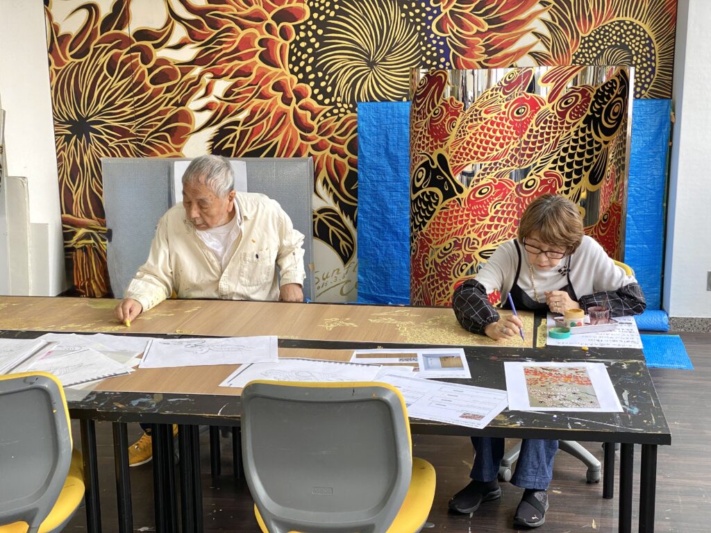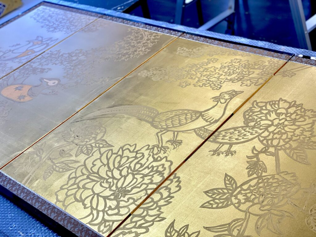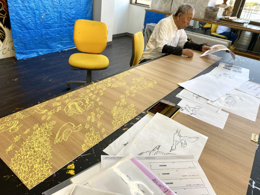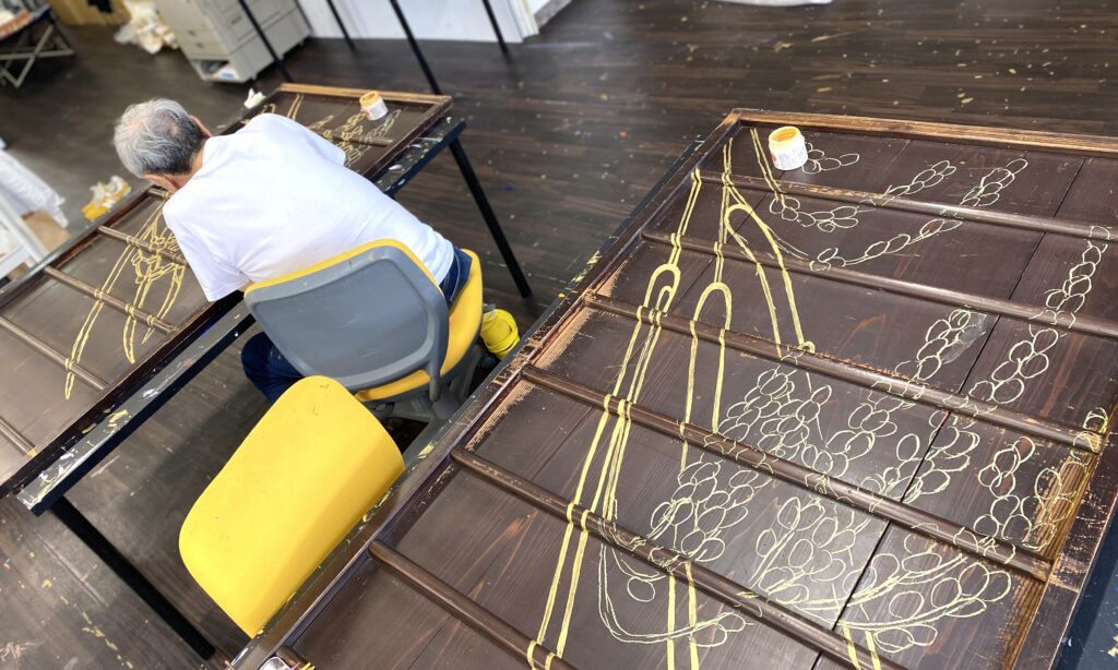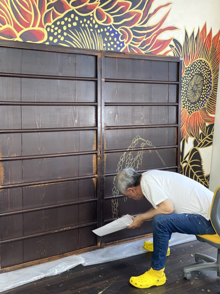 前回につづき、フォーシーズンズホテル京都 バックヤードに9箇所の壁画制作。