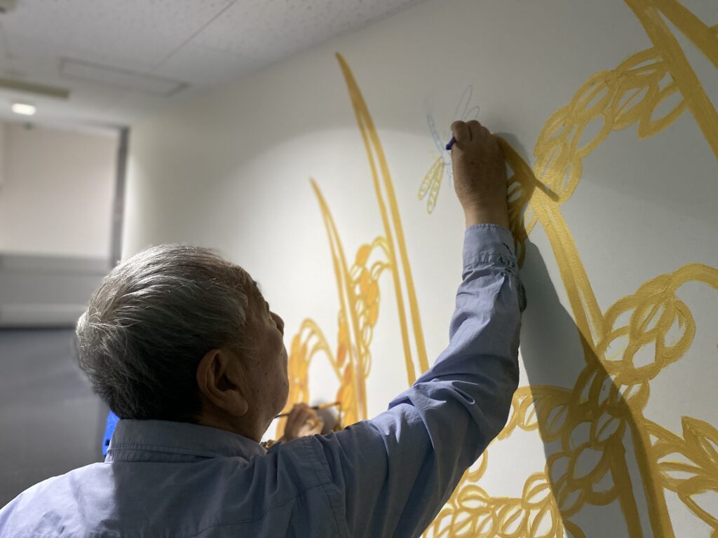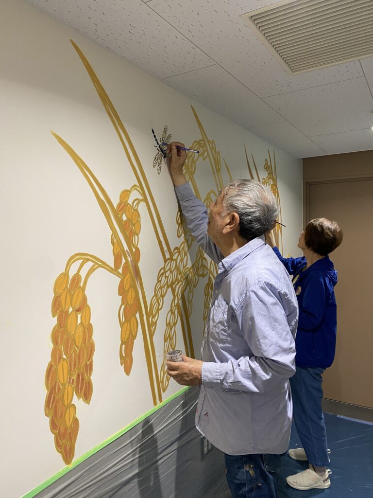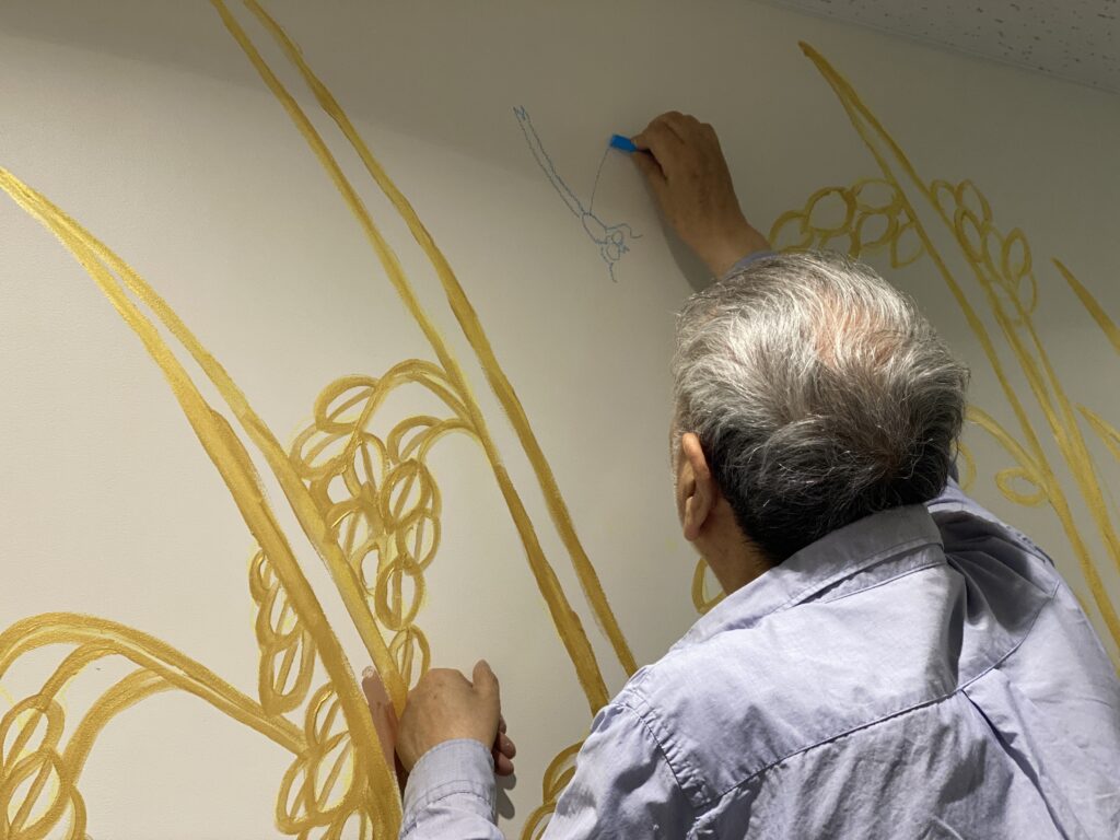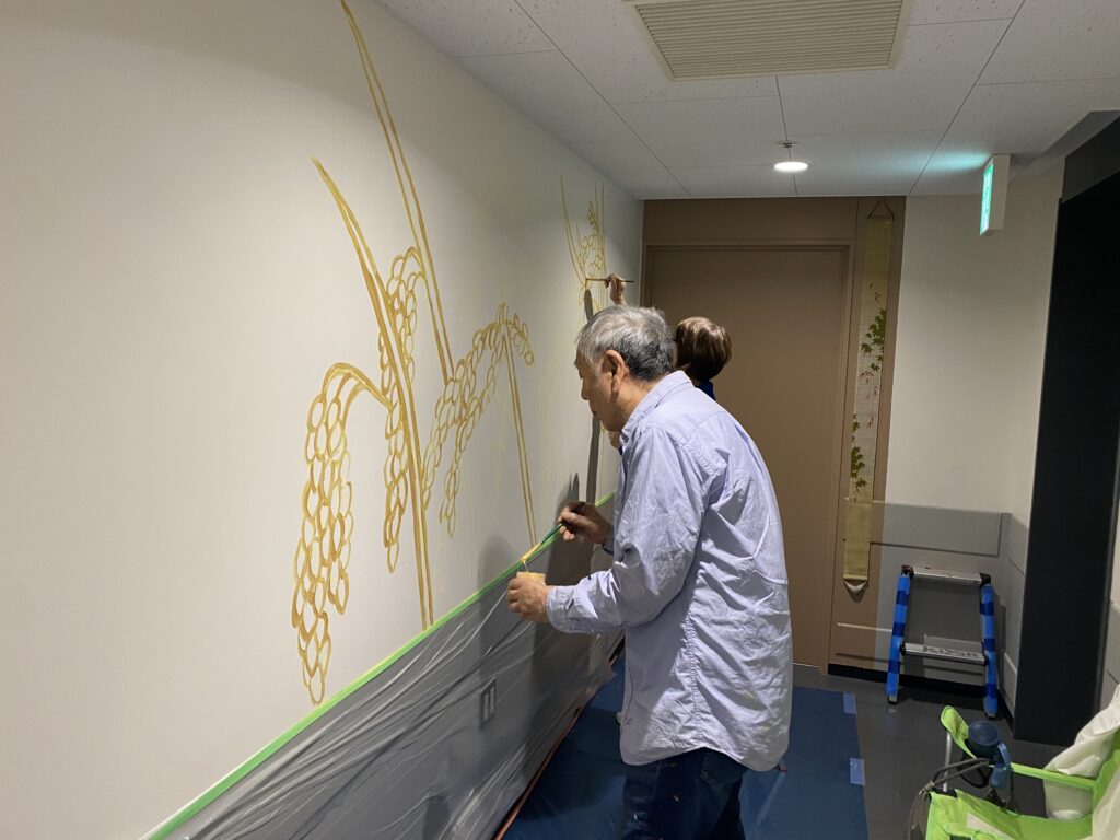 壁画も中盤、ここで支配人と担当者の方にも筆入れをしていただきました⭐︎