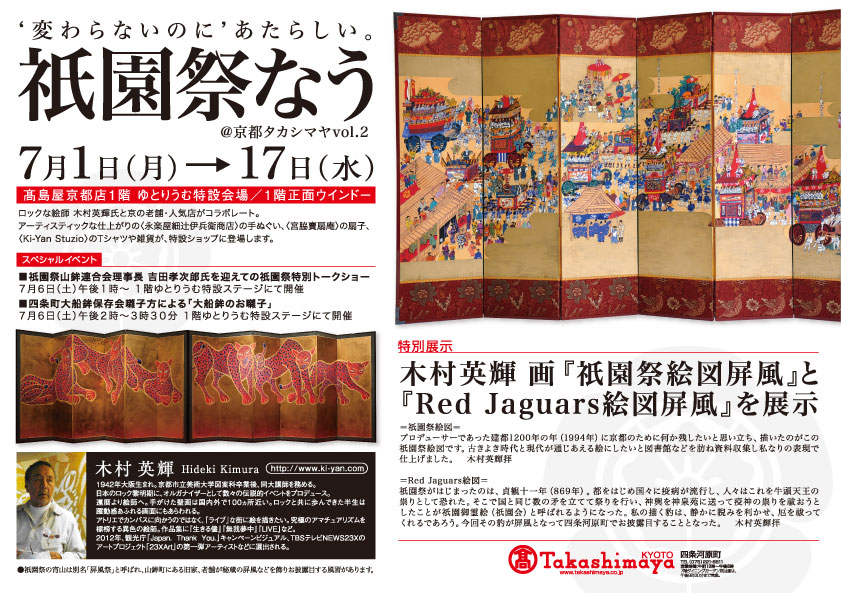 昨年につづき、京都タカシマヤさんにて《祇園祭なう》が開催されます。