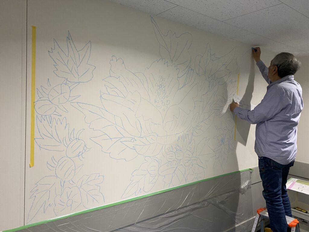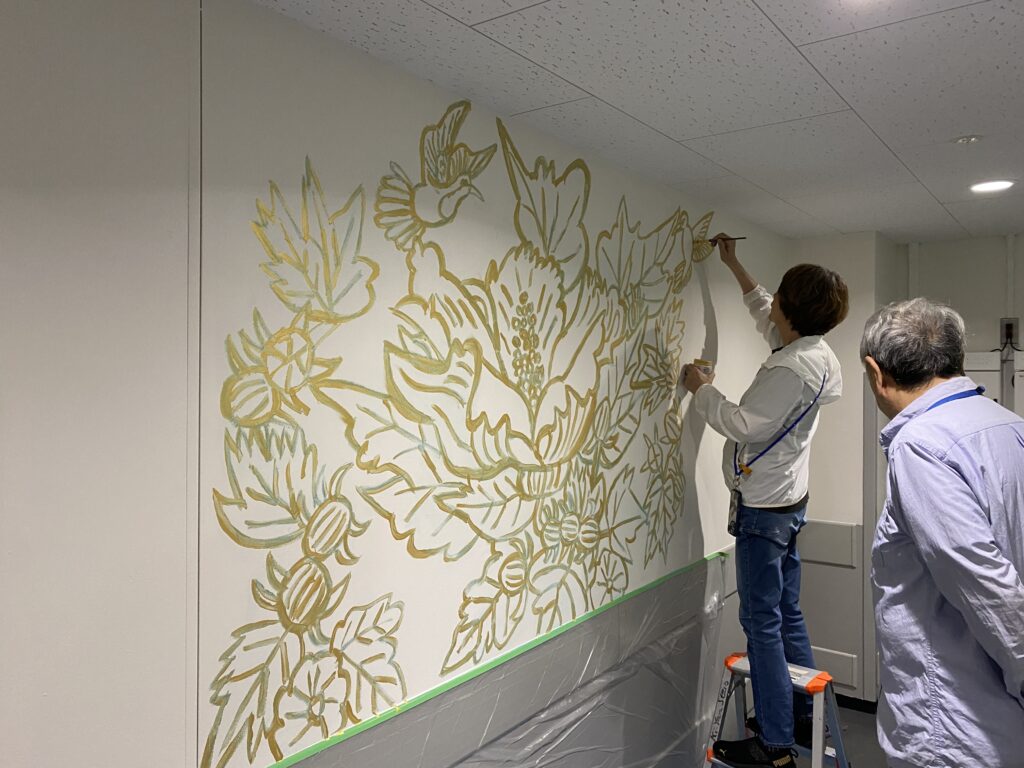 前回につづき、フォーシーズンズホテル京都 バックヤードに9箇所の壁画制作。