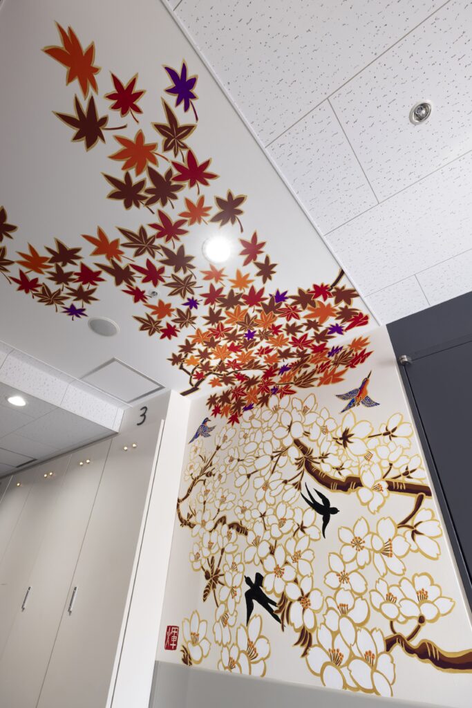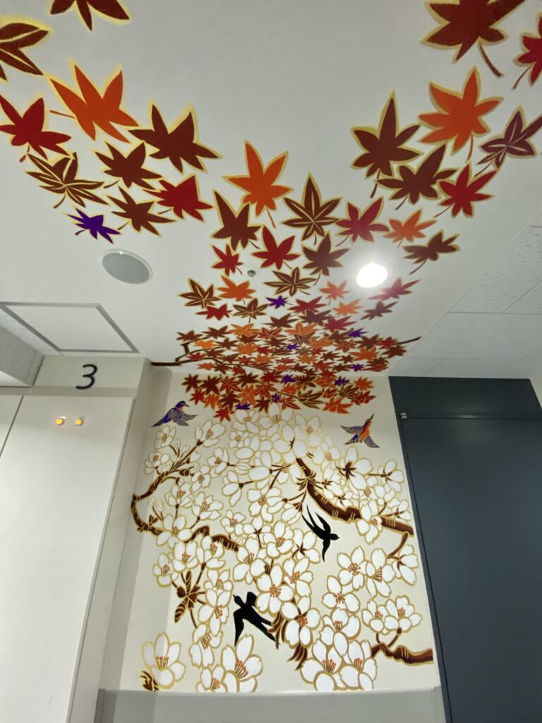 紅葉は艶やかな色合い。その中に3Fのフロアカラー、テラコッタが取り入れられます⭐︎