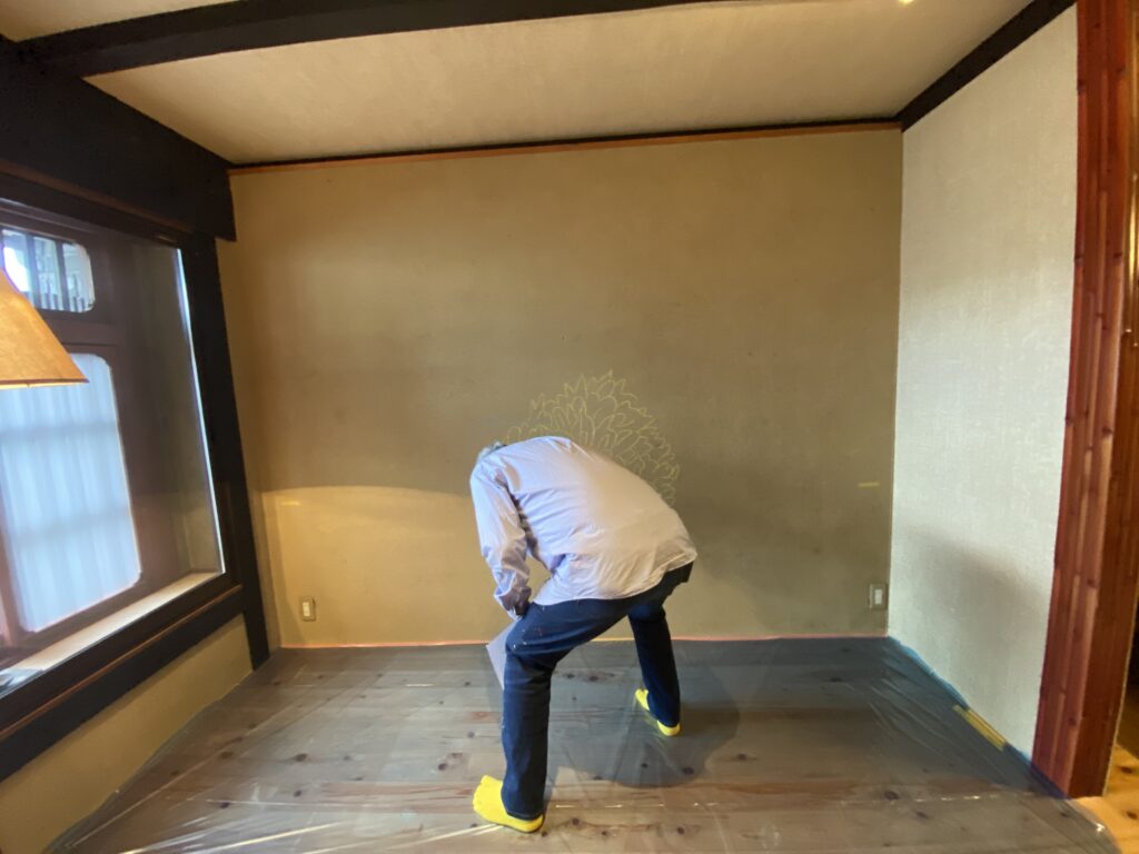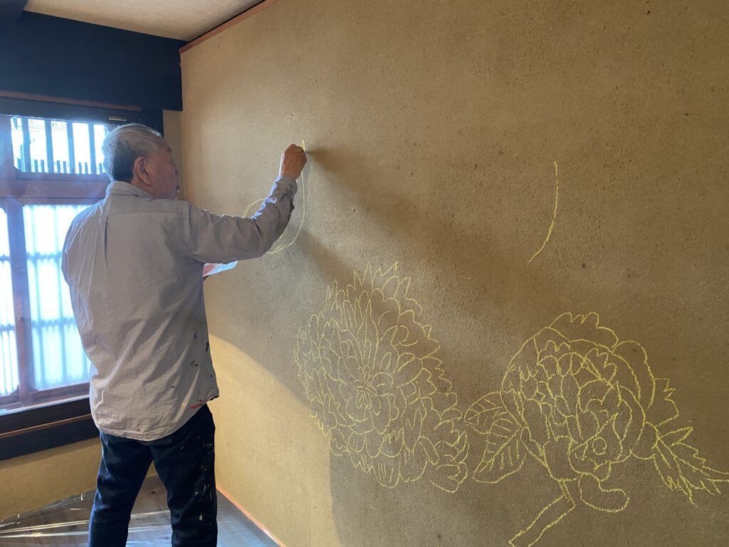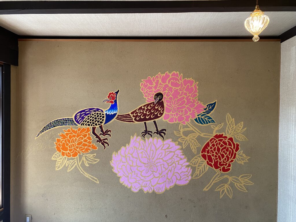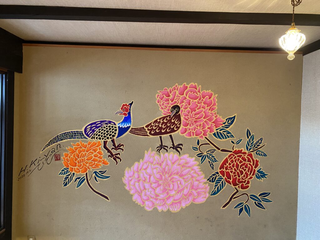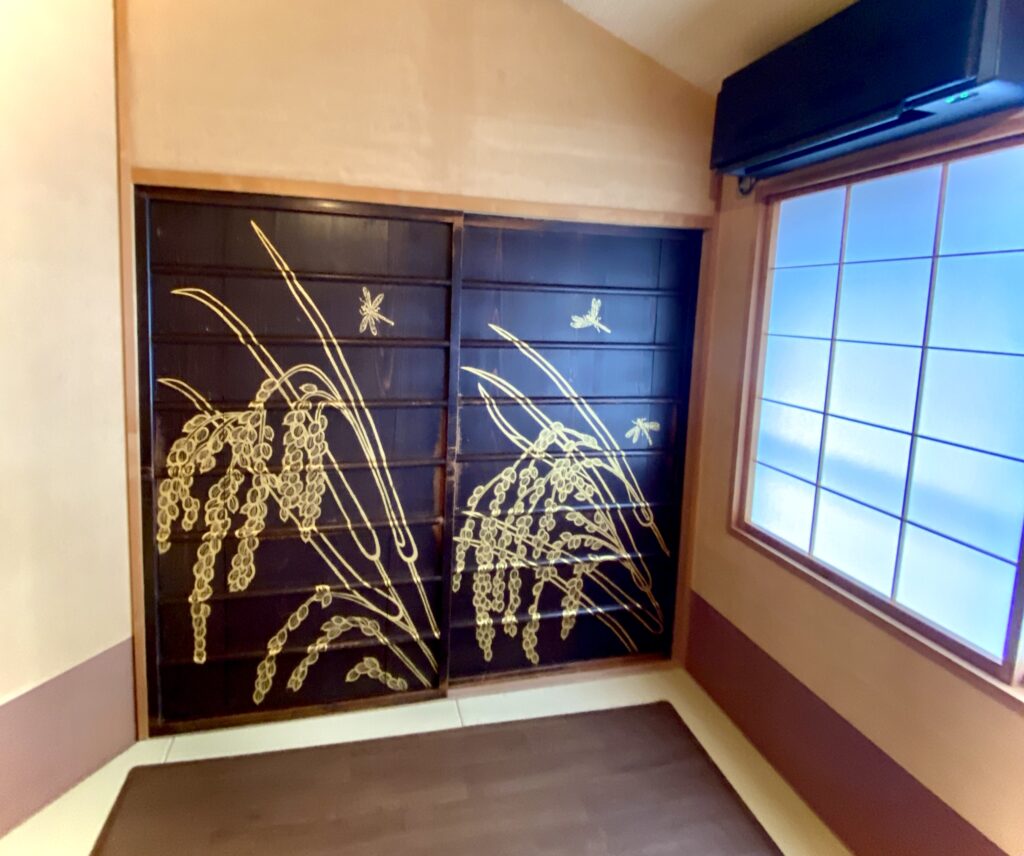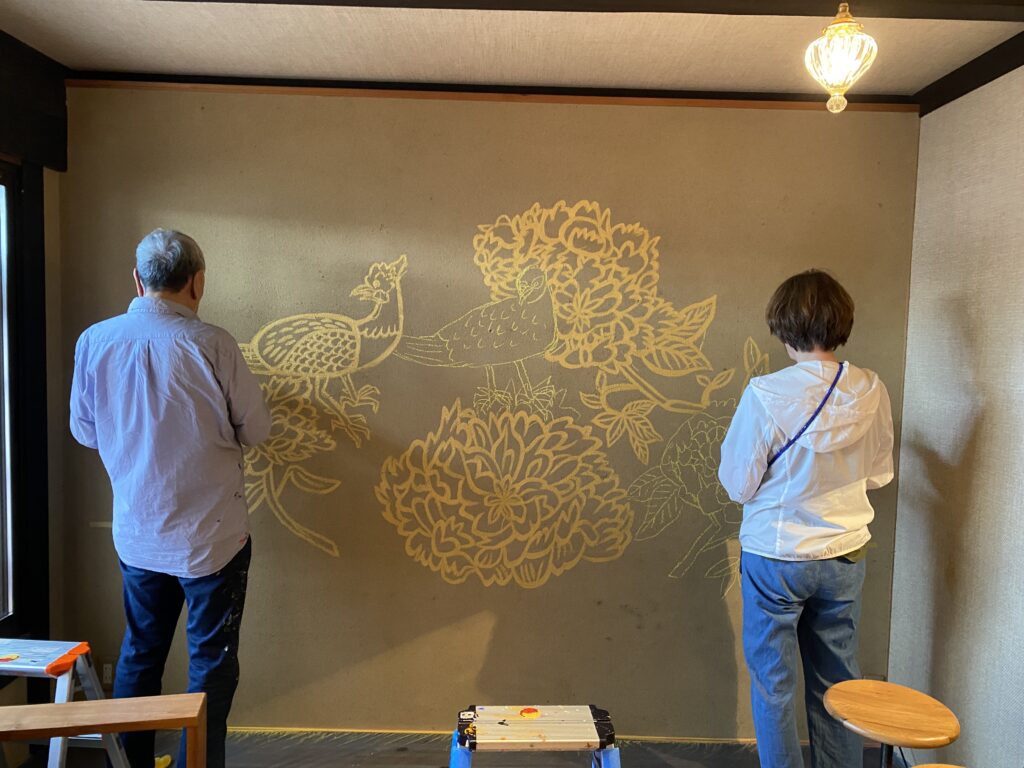 以前、稲穂の板戸を納めた古民家に、今回は壁画依頼をいただきました。