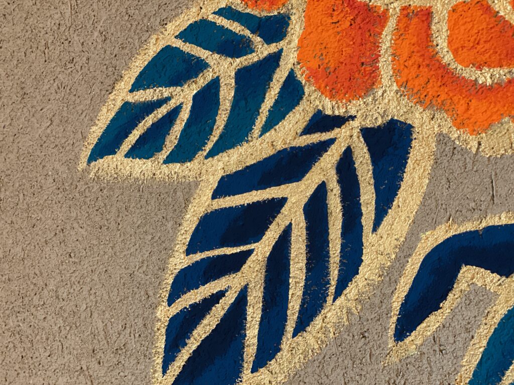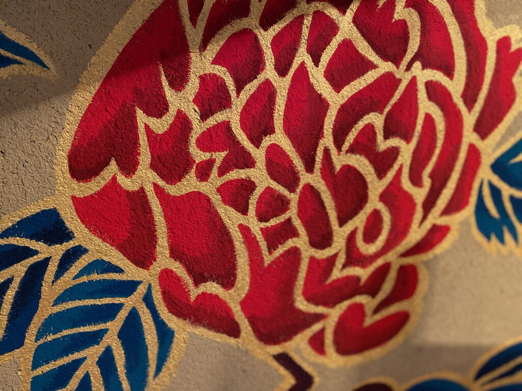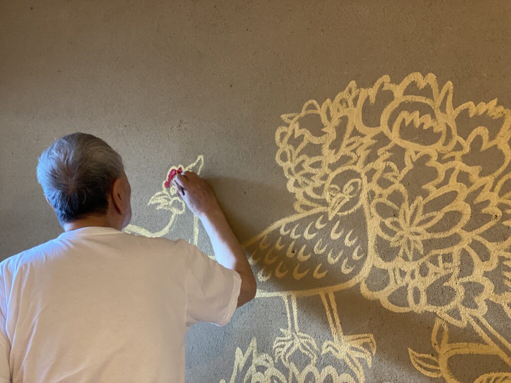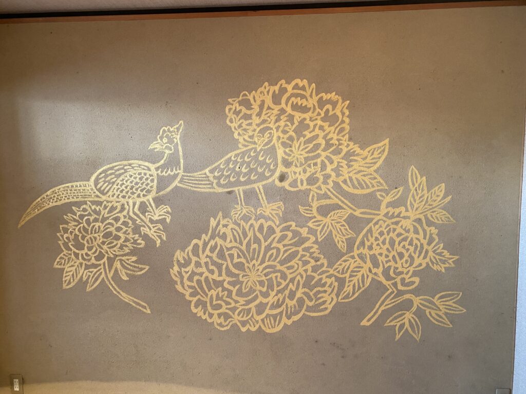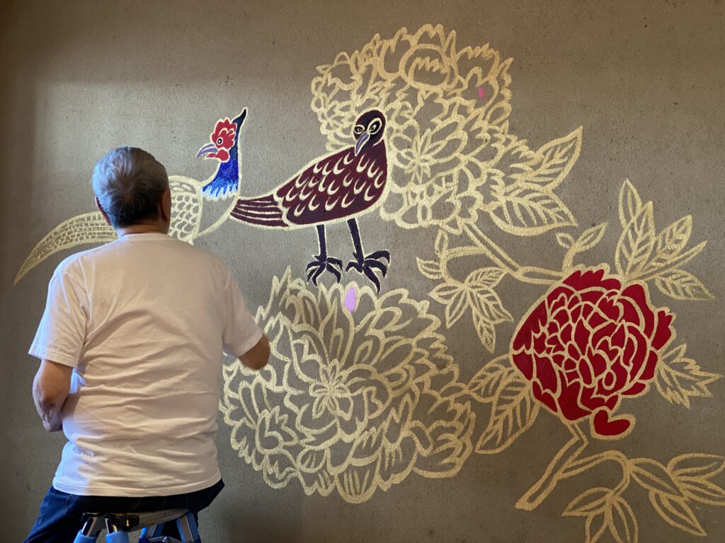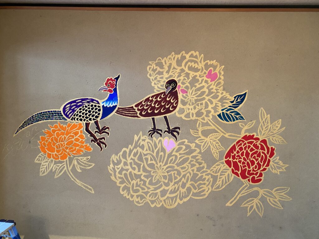 以前、稲穂の板戸を納めた古民家に、今回は壁画依頼をいただきました。