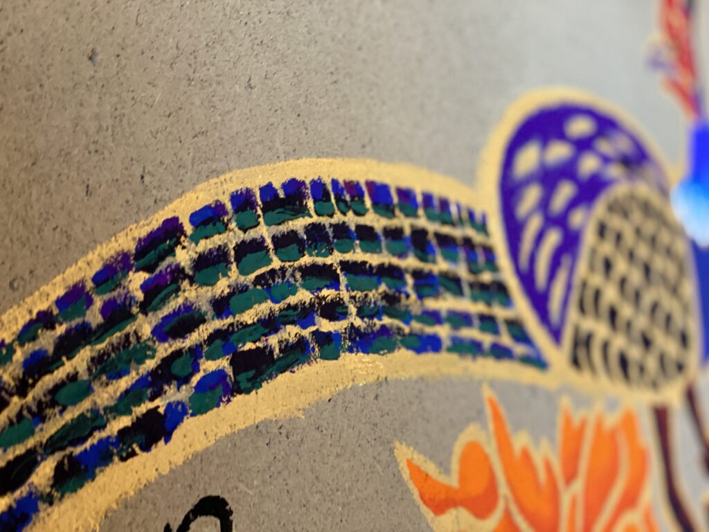 金入れ開始。ザラザラ感に絵の具が持っていかれて中々の塗り作業です。