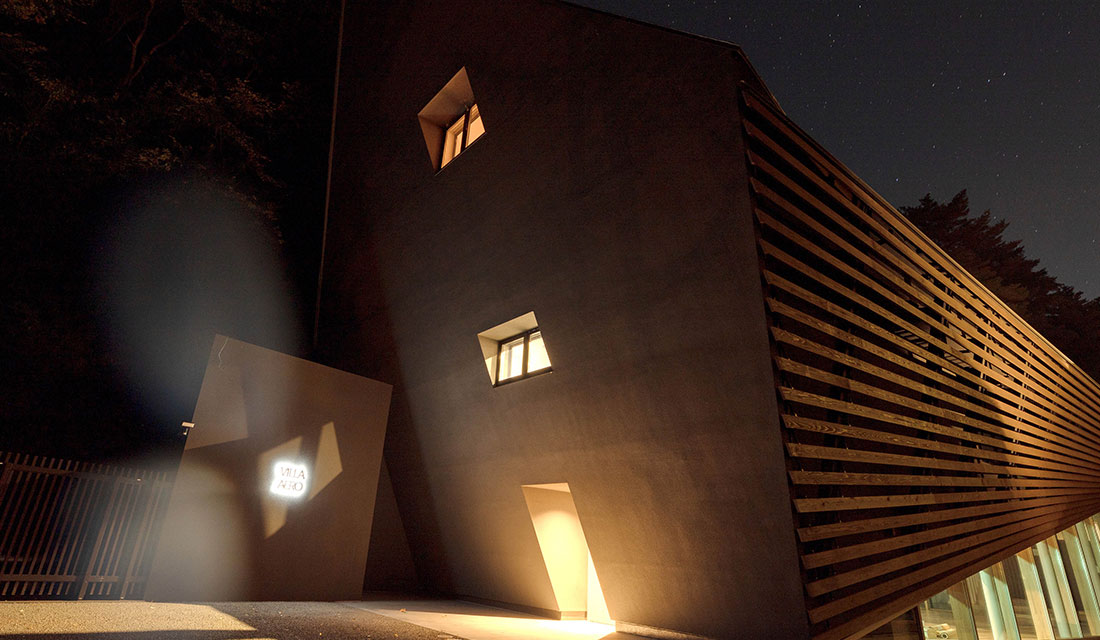 世界に100本のみ存在する巻物の所持者だけが、一生に一度だけ利用できる… 隈研吾氏の設計により河口湖畔に完成した泊まれる劇場「VILLA 富士河口湖 AERO」。