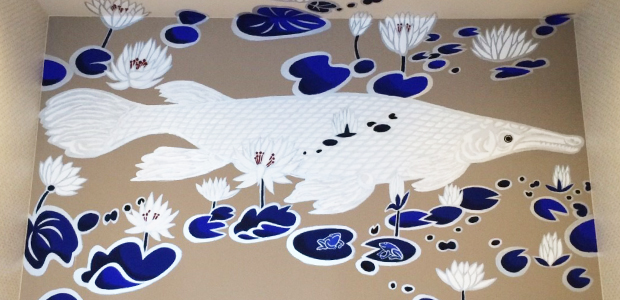 鱗は磁器のように真っ白で、体長2m近くもあり、ワニのような顔。