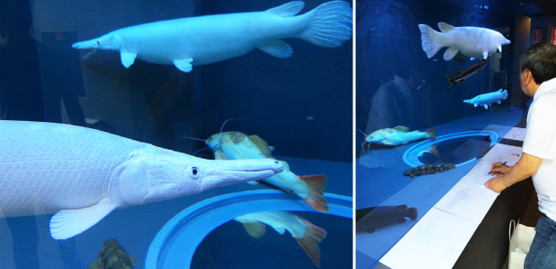 烏丸御池駅からほど近く。静かな京の街並みに突然現れる巨大な水槽。