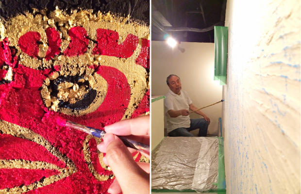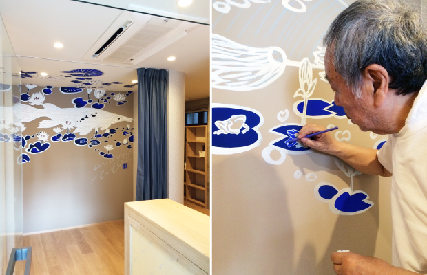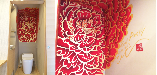 白で統一された清潔な店内に、金の縁取りで描いた〈Red Peony〉と、