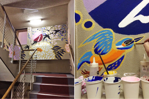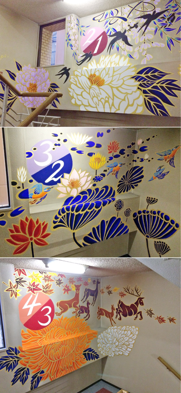 1階「Cafe green box」に描いた〈J-Flowers〉から3年。
