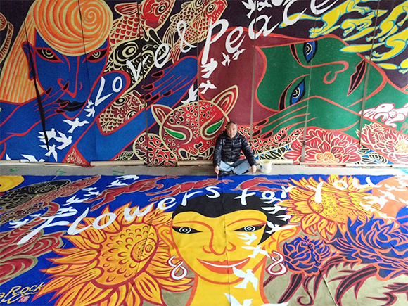 す、す、素直だなぁ。。!最高だ! 「琳派って、カッコエエと信じたことをまっすぐやることなんやろ。 そのまま文字にしても思う、この切れ味。 そしてその後、すぐに生まれた言葉。 繪でロック! 木村英輝を表す、これ以上の言葉はないかも知れない。 生涯通しての仕事が"ライフワーク"なら、 表現の合間に見えるキーワードは、 LOVE&PEACE 正直にカッコよく伝えられるのは、ロック! 木村英輝先生と共に、会場でお待ちしております。