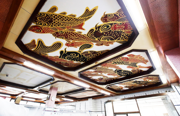 下町の情緒あふれる銭湯に天井画を制作しました。
