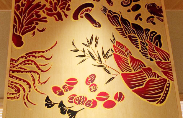 銀杏、松茸、筍など、描かれる食材は多種多様。