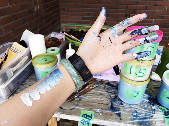 〈おまけ〉 木村英輝先生が、 そう、指がピアノや手芸を嗜んでいそうな、 壁画制作時には、 これが、私の【ありのまま】。